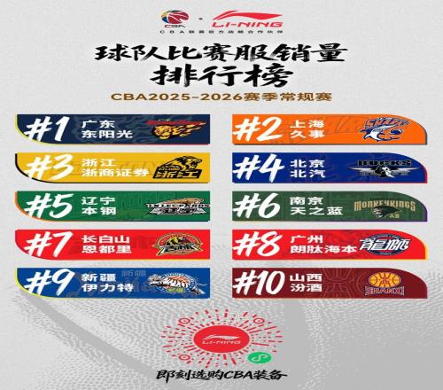 本賽季CBA球衣銷量排行:廣東居首并包攬球員前三,上海廣廈在列 懂球帝 2026-04-28 21:55:07 北京時間4月28日,李寧官方公布了本賽季CBA球衣的銷售排行。球隊方面,球衣銷售前十分別是:廣東、上海、廣廈、北京、遼寧、南京、吉林、廣州、新疆和山西。球員方面,銷量前十分別是:徐杰、胡明軒、崔永熙、張鎮(zhèn)麟、胡金秋、洛夫頓、李添榮、趙繼偉、孫銘徽和朱俊龍。廣東免費觀看_孫銘徽免費觀看_胡金秋免費觀看_廣東高清在線_孫銘徽高清在線_胡金秋高清在線 廣東 孫銘徽 胡金秋 趙繼偉 銷量排行 上海廣廈 cba球衣 上一篇: CBA官方球衣銷量榜:廣東球隊第一三少徐杰胡明軒崔永熙球員前三 下一篇: 在聊啥朱芳雨和徐昕賽前激情“熱聊”去年只租借不交易太明智