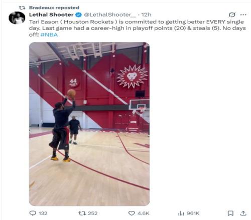 Lethal Shooter曬出了一段視頻,伊森在三分線外不同的位置出手了14個三分球僅僅投丟1個,這或許就是伊森在季后賽三分球回暖的關鍵所在。
