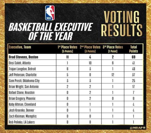 這是史蒂文斯出任球隊高管以來第二次獲此殊榮,他曾在2023-24賽季榮膺年度最佳高管,三年兩度當選的他由此成為聯盟歷史第12位多次獲得該獎項的高管。